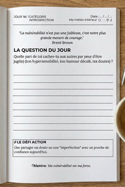- Tu souhaites un compagnon de route pour t'aligner, t'inspirer et agir au quotidien ? Le livre 365 jours pour soi | Carnet de voyage intérieur t'offre 365 pages de guidance complète (émotions, inspirations, questions introspectives, défis...) à suivre pas à pas ou à piger intuitivement.