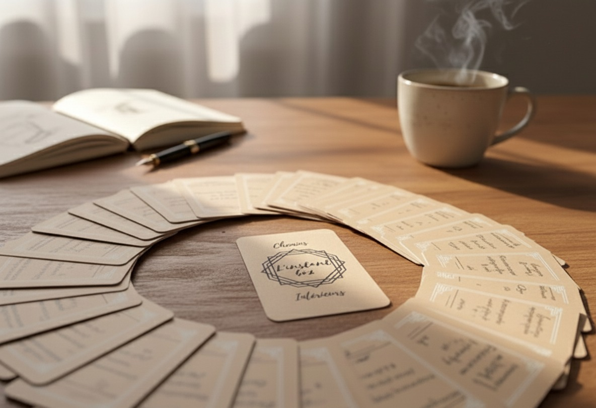 Avec le jeu Chemins intérieurs, chaque carte-question ouvre un espace de dialogue sincère, pour mieux te connaître et mieux comprendre les autres.